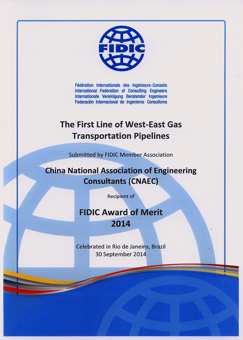 西氣東輸管道一線工程獲FIDIC獎(2014年)