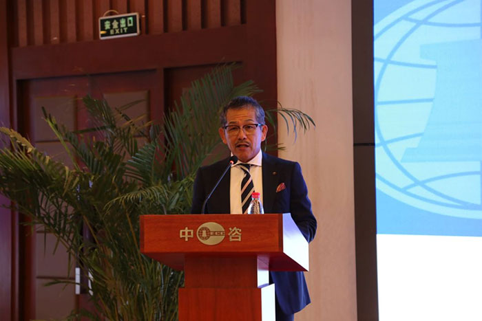 (日本經(jīng)濟產(chǎn)業(yè)省/貿(mào)易振興機構北京代表處川渕英雄次長做“關于中日第三方市場合作推進”的主題發(fā)言)