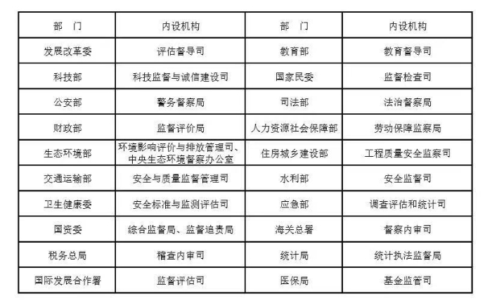 在中央機關層面,中共中央辦公廳下設中辦督查室,負責對中央重大決策、重要工作部署貫徹落實開展督促檢查,做好中央領導同志批示、交辦事項的專項查辦;國務院辦公廳下設國辦督查室,負責組織開展重大專項督查,承辦與有關中央機關聯(lián)合開展的督查工作;全國人大各專門委員會都有對法律和有關法律問題的決議、決定貫徹實施情況開展執(zhí)法檢查的職責。