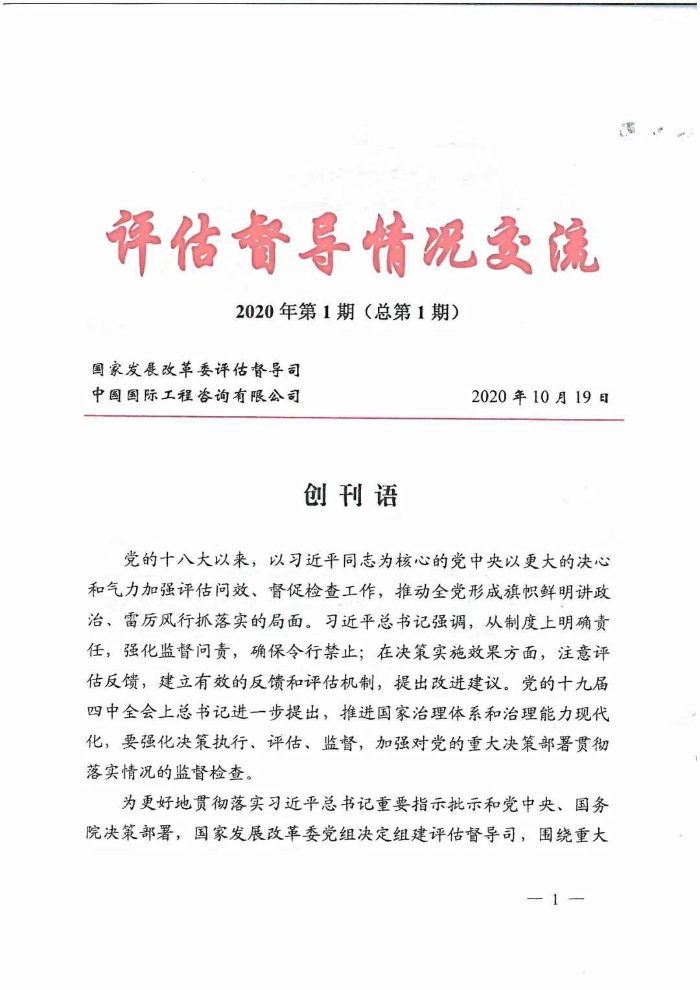 為更好地貫徹落實習近平總書記重要指示批示和黨中央、國務院決策部署,加強評估理論探索、交流工作實踐,國家發(fā)展改革委評估督導司與中國國際工程咨詢有限公司聯(lián)合創(chuàng)辦了交流刊物《評估督導情況交流》?,F(xiàn)將有關內(nèi)容在“中咨研究”公眾號上予以公開,擴大交流范圍,期望以創(chuàng)作積淀思考、以交流觸發(fā)思辨、以文字凝聚共識,助力評估督導工作進而有為、行穩(wěn)致遠!