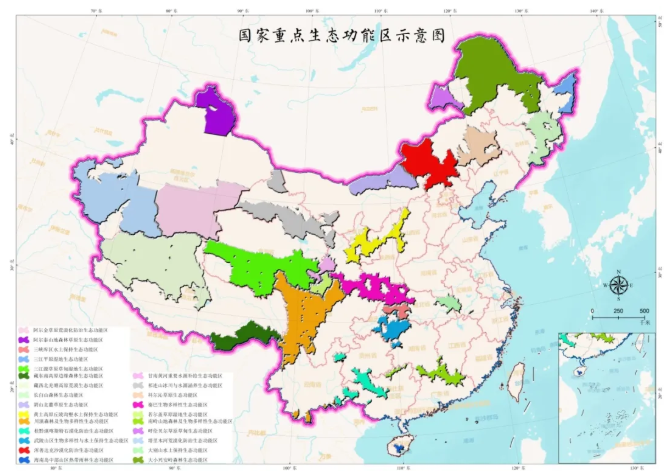 圖1 國(guó)家重點(diǎn)生態(tài)功能區(qū)25個(gè)區(qū)域分布