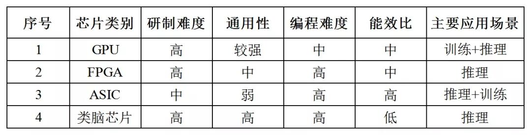 表1 不同類型AI芯片的特征和優(yōu)缺點(diǎn)