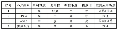 不同類型的芯片在通用性、應(yīng)用兼容性、編程難度、性能、能效比等方面具有各自的優(yōu)缺點(diǎn),適用于訓(xùn)練、推理等不同的應(yīng)用場(chǎng)景。不同類型AI芯片的特征和優(yōu)缺點(diǎn)如表1所示。