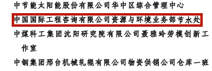 中咨公司資源與環(huán)境業(yè)務部節(jié)水處榮獲“全國巾幗文明崗”稱號