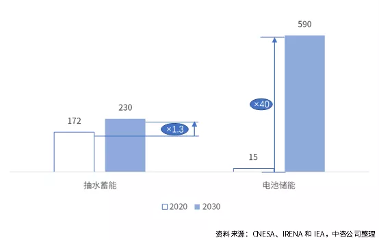 在落實(shí)“雙碳”目標(biāo)的重要背景下,我國能源結(jié)構(gòu)調(diào)整與新型電力系統(tǒng)建設(shè)勢在必行。隨著源網(wǎng)荷儲一體化深度協(xié)調(diào)互動,靈活的能源電力系統(tǒng)新模式將日漸顯現(xiàn)。這一進(jìn)程將催生大量儲能應(yīng)用場景與裝配需求,儲能將扮演不可替代的關(guān)鍵角色。2021年4月國家發(fā)展改革委、國家能源局印發(fā)的《關(guān)于加快推動新型儲能發(fā)展的指導(dǎo)意見(征求意見稿)》(以下簡稱《指導(dǎo)意見》)強(qiáng)調(diào)儲能是支撐新型電力系統(tǒng)的重要技術(shù)和基礎(chǔ)裝備,對推動能源綠色轉(zhuǎn)型、應(yīng)對極端事件、保障能源安全、促進(jìn)能源高質(zhì)量發(fā)展、實(shí)現(xiàn)碳達(dá)峰碳中和具有重要意義。 01國際、國內(nèi)儲能建設(shè)規(guī)模分析及預(yù)測 在碳中和背景下,國際國內(nèi)權(quán)威機(jī)構(gòu)、政府機(jī)關(guān)和中央企業(yè)結(jié)合當(dāng)前實(shí)際與發(fā)展要求,紛紛預(yù)測或提出儲能裝機(jī)規(guī)模的時(shí)間表、路線圖??傮w來看,在各國政府大力引導(dǎo)推動下,國際國內(nèi)儲能市場將高速增長。 (一) 國際儲能建設(shè)規(guī)模 全球儲能裝機(jī)規(guī)模未來十年將高速增長。2018~2020年全球儲能新增裝機(jī)容量分別為5.5GW、6.3GW、6.5GW,三年年均復(fù)合增長率為3.5%。根據(jù)國際可再生能源署(IRENA)展望報(bào)告《電力儲存與可再生能源:2030年的成本與市場》的基本預(yù)測情景中提出,到2030年,抽水蓄能裝機(jī)將達(dá)到約230GW;另據(jù)國際能源署(IEA)《2050凈零排放:全球能源路線圖》報(bào)告中預(yù)測,電池儲能到2030年裝機(jī)規(guī)模將達(dá)到590GW。2030年,在僅考慮抽水蓄能和電池儲能的情況下[1],儲能總裝機(jī)規(guī)模將達(dá)到約820GW,2020~2030年復(fù)合增長率約16%。 圖 1 2015-2020年全球儲能市場累計(jì)裝機(jī)規(guī)模(單位:GW) 電池儲能將成為儲能新增裝機(jī)的重要來源和未來儲能的主要裝機(jī)支撐。截至2020年底,全球儲能已投運(yùn)項(xiàng)目累計(jì)裝機(jī)規(guī)模為191GW,其中抽水蓄能裝機(jī)規(guī)模為172GW,占比90%,電池儲能裝機(jī)15GW,抽水蓄能占據(jù)絕對主導(dǎo)地位。根據(jù)IRENA和IEA預(yù)測的抽水蓄能和電池儲能裝機(jī)情況,到2030年,抽水蓄能裝機(jī)增加至230GW,2020~2030年復(fù)合增長率約3%,電池儲能裝機(jī)增加至590GW,2020~2030年復(fù)合增長率約44%。據(jù)此推算,到2030年,抽水蓄能裝機(jī)與電池儲能裝機(jī)比例約為1:2.5,電池儲能占比超過70%,成為未來儲能重要支撐性裝機(jī)來源。 圖 2 2020-2030年全球抽水蓄能和電池儲能累計(jì)裝機(jī)規(guī)模(單位:GW) (二) 國內(nèi)儲能建設(shè)規(guī)模 2020年我國新增儲能裝機(jī)2.6GW,儲能總裝機(jī)規(guī)模約34GW。根據(jù)CESA數(shù)據(jù),2020年我國新增儲能裝機(jī)2.6GW,其中抽水蓄能新增裝機(jī)容量為1.8GW,占比為69.5%,電池儲能新增裝機(jī)容量為0.79MW,占比30.4%。根據(jù)《中國電力行業(yè)年度發(fā)展報(bào)告2021》與CNESA數(shù)據(jù)推測,截至2020年底,我國儲能總裝機(jī)規(guī)模約34GW,其中抽水蓄能約31GW,電池儲能約3GW。 到2025年,我國儲能裝機(jī)規(guī)模新增60GW以上,有望達(dá)到94GW?!吨笇?dǎo)意見》提出,計(jì)劃到2025年,新型儲能[2]裝機(jī)規(guī)模達(dá)30GW以上。此外,國家電網(wǎng)透露其在運(yùn)、在建抽水蓄能裝機(jī)規(guī)模達(dá)到62GW,“十四五”期間,將力爭新增開工20GW以上;南方電網(wǎng)透露,其到2025年將投產(chǎn)5GW抽水蓄能電站。保守估計(jì),“兩網(wǎng)”在“十四五”期間或?qū)⑿略?0GW以上抽水蓄能裝機(jī)。“十四五”期間,我國新增抽水蓄能和電池儲能裝機(jī)或?qū)⒊^60GW。其中,新增裝機(jī)中一半為電池儲能、一半為抽水蓄能,電池儲能年復(fù)合增長率約為58%,抽水蓄能年復(fù)合增長率為14%,電池儲能增速將遠(yuǎn)高于抽水蓄能。 02 儲能發(fā)展面臨的挑戰(zhàn) 大力發(fā)展儲能已形成良好的政府間共識和技術(shù)基礎(chǔ),但仍面臨重重挑戰(zhàn)。 (一) 建設(shè)成本仍高昂,商業(yè)模式不清晰 電池儲能雖然相較其他儲能而言具備綜合性成本優(yōu)勢,但全生命周期度電成本仍然偏高,位于0.5~1.5元/kwh之間,遠(yuǎn)高于進(jìn)入平價(jià)時(shí)代的風(fēng)光電價(jià)。據(jù)專家預(yù)測,在目前體制機(jī)制下,儲能度電成本需要下降到0.1~0.3元,行業(yè)內(nèi)多數(shù)企業(yè)才能具備足夠的承擔(dān)能力,方可形成在全國大面積鋪開的商業(yè)模式。 (二)政策形勢不明朗,資本觀望氛圍濃 儲能對傳統(tǒng)電力系統(tǒng)而言是新生事物,相關(guān)部委關(guān)于儲能未來科學(xué)合理的監(jiān)管模式尚未達(dá)成共識。導(dǎo)致了行業(yè)發(fā)展在效率考量與安全考慮間徘徊、在政府主導(dǎo)與市場自主間徘徊,傳導(dǎo)至資本市場則體現(xiàn)為投資的忽冷忽熱,不利于形成穩(wěn)定的預(yù)期和增量式資本導(dǎo)入。 (三) 標(biāo)準(zhǔn)體系未建立,安全運(yùn)營存隱患 目前對適應(yīng)我國儲能產(chǎn)業(yè)發(fā)展的安全策略尚未形成頂層共識,電池儲能的安全標(biāo)準(zhǔn)仍未建立,特別是貫穿儲能產(chǎn)品設(shè)計(jì)、研發(fā)、生產(chǎn)、集成等各個(gè)流程的