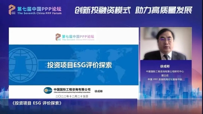 2022年12月25日,由國家發(fā)展改革委指導(dǎo),清華大學(xué)主辦,清華大學(xué)政府和社會資本合作(PPP)研究中心、清華大學(xué)中國發(fā)展規(guī)劃研究院、清華大學(xué)區(qū)域發(fā)展研究院、清華大學(xué)國家治理與全球治理研究院共同承辦,中國高校PPP論壇、中國PPP咨詢機構(gòu)論壇協(xié)辦的第七屆中國PPP論壇在線上成功舉行,并通過中國新聞網(wǎng)、清華大學(xué)視頻號、B站平臺等進行直播,超過160萬人次在線觀看。論壇以“創(chuàng)新投融資模式 助力高質(zhì)量發(fā)展”為主題。 中國國際工程咨詢有限公司研究中心副主任、中國PPP咨詢機構(gòu)論壇副秘書長徐成彬在論壇發(fā)表“投資項目ESG評價探索”主旨演講,以下為發(fā)言全文。