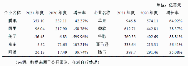 表3   中美前5大數(shù)字平臺企業(yè)利潤對比