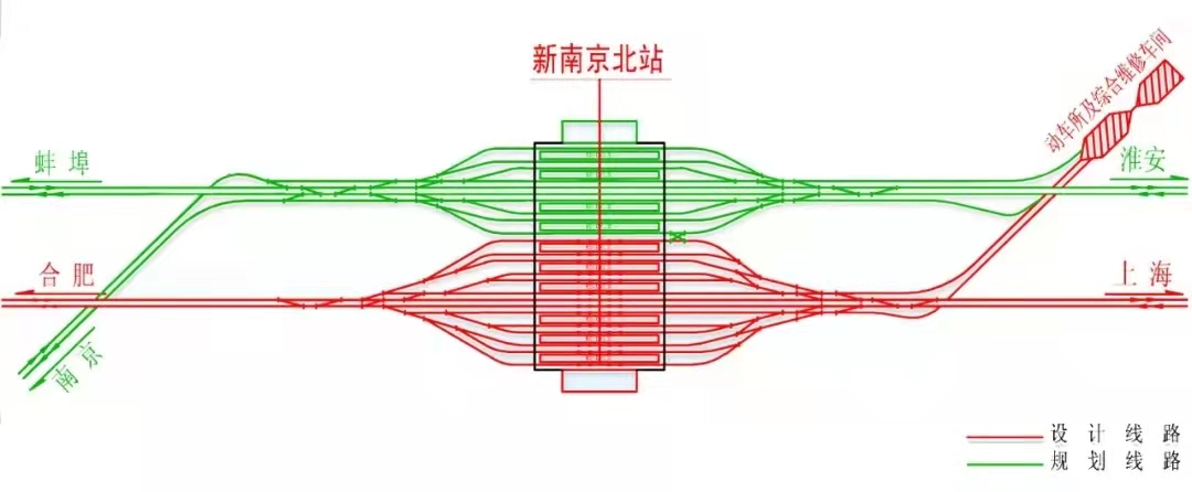 摘 要:沿江高速鐵路作為《中長期鐵路網(wǎng)規(guī)劃》中的國家干線,是沿海通道的重要組成部分。為完善優(yōu)化南京鐵路樞紐,提升服務(wù)功能,在分析樞紐現(xiàn)狀設(shè)施設(shè)備基礎(chǔ)上,提出了沿江高速鐵路引入南京鐵路樞紐新建第三主客站站址方案研究,經(jīng)綜合比選得出最佳站址方案,在此基礎(chǔ)上又進(jìn)行了詳細(xì)的站位方案研究,合理確定了最優(yōu)車站方案,對提升南京綜合交通樞紐地位,促進(jìn)長江三角洲地區(qū)交通運輸更高質(zhì)量一體化發(fā)展具有重要意義。 關(guān)鍵詞:沿江高速鐵路;南京鐵路樞紐;客運系統(tǒng);站址方案;方案比選 隨著我國“一帶一路”倡議、“長江經(jīng)濟(jì)帶”國家戰(zhàn)略的實施推進(jìn),為更好地促進(jìn)長江三角洲地區(qū)城市群沿江各市的跨江融合和一體化發(fā)展,有效解決長江南北兩岸交通發(fā)展“不平衡、不充分”矛盾,緩解既有沿江通道內(nèi)線路運輸壓力,進(jìn)一步優(yōu)化區(qū)域高鐵通道資源結(jié)構(gòu)配置,實現(xiàn)高速鐵路高質(zhì)量發(fā)展和交通強(qiáng)國建設(shè)需要,在此背景下開展了沿江高速鐵路項目研究,而沿江高速鐵路如何引入沿江重要樞紐地區(qū)則顯得極為重要。 一、沿江高速鐵路引入南京鐵路樞紐方案分析 (一)沿江高速鐵路 沿江通道是《中長期鐵路網(wǎng)規(guī)劃》“八縱八橫”高速鐵路網(wǎng)中重要的橫向通道[1],同時也是長江經(jīng)濟(jì)帶綜合交通走廊的重要組成,東西串聯(lián)華東、華中、西南地區(qū),輻射長三角、長江中游和成渝三大沿江城市群[2]。沿江高速鐵路上海經(jīng)南京至合肥段,東起上海市,經(jīng)南通、泰州、揚(yáng)州、南京,西至合肥市,全線新建正線長度約445km,設(shè)計時速350千米。項目建成后,將與區(qū)域內(nèi)京滬高鐵、滬杭鐵路、滬通鐵路、滬杭城際、蘇南沿江城際等既有、規(guī)劃和在建鐵路共同承擔(dān)長三角地區(qū)旅客出行任務(wù),有效促進(jìn)長三角地區(qū)交通運輸更高質(zhì)量一體化發(fā)展??紤]到沿江高速鐵路引入南京樞紐方案復(fù)雜、控制因素較多,結(jié)合南京既有鐵路樞紐現(xiàn)狀及規(guī)劃情況,對線路引入南京樞紐進(jìn)行了多方案綜合技術(shù)經(jīng)濟(jì)比選研究。 圖1 沿江通道線路示意圖 (二)南京鐵路樞紐 南京鐵路樞紐不僅是華東地區(qū)重要的路網(wǎng)性樞紐,而且是國家發(fā)展改革委《中長期鐵路網(wǎng)規(guī)劃》中公布的19個全國鐵路綜合樞紐之一。樞紐現(xiàn)狀銜接京滬、寧杭高鐵,滬寧、寧安城際、京滬線、合寧線、寧啟線、寧蕪線等鐵路干線以及浦梅、林浦等支線的“環(huán)+放射”型鐵路樞紐。樞紐現(xiàn)有車站32處,其中南京、南京南為樞紐主要客運站,南京東為主要編組站,南京北為輔助技術(shù)作業(yè)站,梅桂營、棲霞山北為工業(yè)站,其余為中間站[3][4]。根據(jù)中國鐵路總公司與江蘇省人民政府聯(lián)合批復(fù)的《南京市鐵路樞紐總圖規(guī)劃(2016—2030)》,南京鐵路樞紐將形成“兩環(huán)、四跨、十五線、五個重要客站”的環(huán)形放射狀格局[5]。通過規(guī)劃實施,南京將形成連接全國的“米”字形高速鐵路網(wǎng)絡(luò),構(gòu)建“兩環(huán)兩橫十四射”高速公路網(wǎng)和“一環(huán)十五線”的國家級特大型環(huán)形鐵路樞紐的格局[6],形成省內(nèi)設(shè)區(qū)市1.5小時交通圈,上海、杭州、合肥1小時交通圈,北京、天津、濟(jì)南、鄭州、武漢、南昌、青島、福州等3—5小時交通圈。 為了充分發(fā)揮高速鐵路客站分工明確、區(qū)域布置合理的原則,根據(jù)南京鐵路樞紐總圖規(guī)劃,樞紐將形成南京、南京南、新南京北站為主客站的客運格局。因此,沿江高速鐵路引入南京樞紐時,不僅要充分考慮緩解既有客站能力緊張問題,而且要從城市總體規(guī)劃和客站地理位置角度,論證新建第三主客運站的可行性。結(jié)合旅客運輸需求、既有客站布局以及城市規(guī)劃等因素,從客站能力適應(yīng)性角度分析認(rèn)為,隨著合寧鐵路、沿江高鐵、蘇南沿江城際及寧淮、寧滁城際鐵路的引入,南京樞紐近遠(yuǎn)期辦理客車總對數(shù)分別達(dá)到780對/日和959對/日,既有客站能力均難以適應(yīng)近遠(yuǎn)期旅客列車運輸需求,且不具備改擴(kuò)建條件;從客站地理位置角度分析,南京、南京南站均位于江南地區(qū),江北地區(qū)尚無主要客站,若新建客站位于江南地區(qū),則江北各條線路間的跨線列車均需繞行至江南,運輸徑路不暢,新建客站宜選擇在江北地區(qū);從城市規(guī)劃角度分析,南京市江北地區(qū)為城市副中心及國家級新區(qū),對南京在長江經(jīng)濟(jì)帶核心地位的提升和南京都市圈輻射能力的增強(qiáng)具有重要作用,在江北地區(qū)建設(shè)大型客運樞紐將大大提升江北國家級新區(qū)的區(qū)位地位,提升江北地區(qū)公共服務(wù)能級,構(gòu)成雙向互動的“擁江”發(fā)展格局。南京鐵路樞紐總布置示意圖如圖2所示。 圖2 南京鐵路樞紐總布置示意圖 (三)方案構(gòu)成 根據(jù)沿江高速鐵路線路走向、站位設(shè)置及南京市城市總體規(guī)劃等要求,按照創(chuàng)新、協(xié)調(diào)、綠色、開放、共享新發(fā)展理念,結(jié)合沿江高速鐵路引入南京鐵路樞紐
