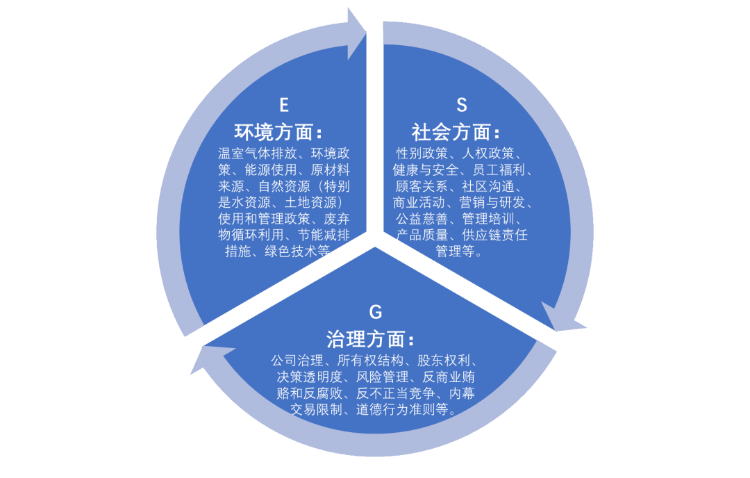 ESG是英文Environmental(環(huán)境)、Social(社會)和Governance(治理)的縮寫,是一種關(guān)注企業(yè)環(huán)境、社會、治理績效而非財務(wù)績效的投資理念和企業(yè)評價標(biāo)準(zhǔn)。基于ESG評價,投資者可以評估其投資行為和企業(yè)(投資對象)在促進經(jīng)濟可持續(xù)發(fā)展、履行社會責(zé)任等方面的貢獻。
