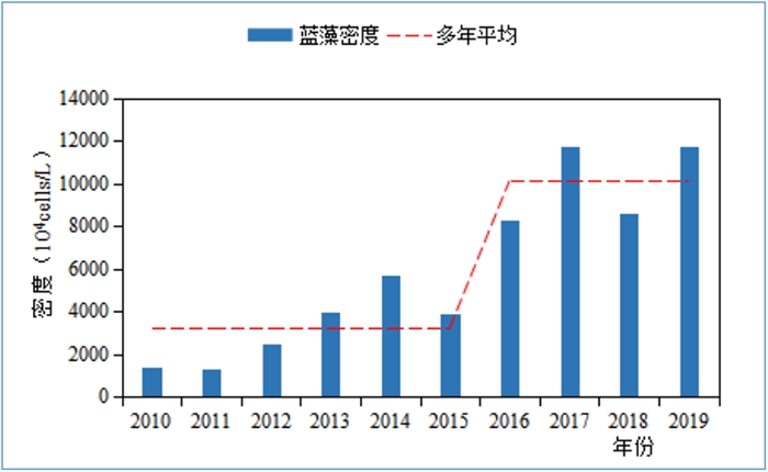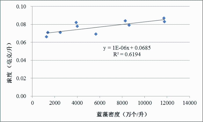 圖7 2010年以來太湖藍(lán)藻密度與總磷濃度變化關(guān)系
