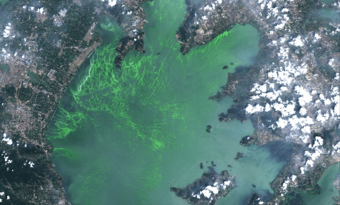 藍(lán)藻爆發(fā)時(shí)衛(wèi)星拍攝的圖片