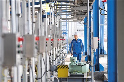 近年來(lái),中國(guó)石油蘭州石化公司加大科技創(chuàng)新力度,大力增產(chǎn)高附加值產(chǎn)品,自主研發(fā)的丁腈橡膠、煉油催化劑等產(chǎn)能已躋身世界前列,創(chuàng)新驅(qū)動(dòng)和提質(zhì)增效能力顯著增強(qiáng)。圖為該公司橡膠運(yùn)行部丁腈二區(qū)域工藝技術(shù)負(fù)責(zé)人在進(jìn)行生產(chǎn)裝置日常巡檢。
