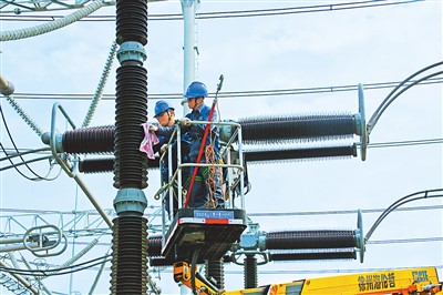 南方電網(wǎng)玉林供電局500千伏美林站美久甲線是廣西“四橫三縱”主網(wǎng)架的骨干輸電線路,是北部灣沿海城市間的重要電力通道,為廣西加快地區(qū)新型工業(yè)化進(jìn)程提供充足的電力支撐。圖為近日電力工人正在對(duì)美久甲線開(kāi)展春季檢修工作,保障電力可靠傳輸。