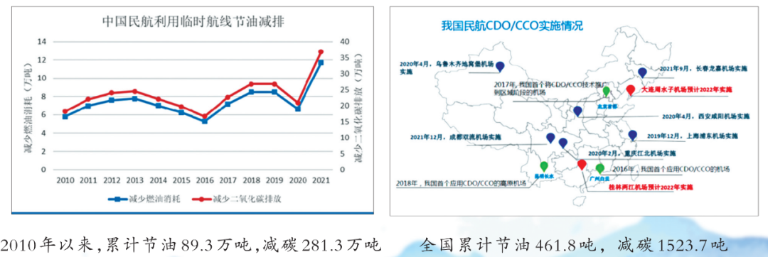 我國民航采取碳減排現(xiàn)有措施的主要方向?yàn)樘岣吣茉蠢眯?,降低單位產(chǎn)出碳排放強(qiáng)度。因航空燃油等能源成本占據(jù)行業(yè)企業(yè)尤其是航空公司運(yùn)營(yíng)成本較大比例,企業(yè)具有內(nèi)生動(dòng)力開展節(jié)油、節(jié)能工作,包括并不限于積極引進(jìn)新型節(jié)油飛機(jī)/發(fā)動(dòng)機(jī)、提高飛機(jī)利用率和載運(yùn)率、采用高能效地面設(shè)備、開展飛行活動(dòng)系統(tǒng)優(yōu)化管理等措施。航空公司通過優(yōu)化機(jī)隊(duì)、航路航線和飛行操作等方式,在飛機(jī)的停場(chǎng)、航前準(zhǔn)備、起飛、著陸及巡航等不同階段提高效率,實(shí)現(xiàn)節(jié)油功效,降低航油消耗;機(jī)場(chǎng)按照《中國民航四型機(jī)場(chǎng)建設(shè)行動(dòng)綱要(2020—2035年)》,積極建設(shè)在全生命周期內(nèi)實(shí)現(xiàn)資源集約節(jié)約、低碳運(yùn)行、環(huán)境友好的“綠色機(jī)場(chǎng)”,試點(diǎn)建設(shè)“零碳機(jī)場(chǎng)”,通過光伏發(fā)電、能源替代、節(jié)能改造、低碳管理及綠色運(yùn)營(yíng)管理體系建設(shè)等一系列舉措支撐機(jī)場(chǎng)綠色發(fā)展。