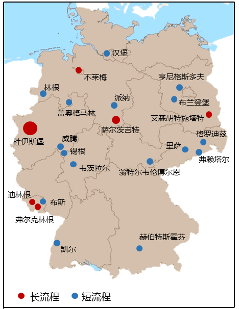 歷史上,依托當?shù)刎S富的煤炭和法國洛林地區(qū)的鐵礦資源,魯爾區(qū)成為德國鋼鐵生產(chǎn)最集中的區(qū)域。從20世紀60年代起,魯爾區(qū)煤鋼產(chǎn)業(yè)經(jīng)歷了數(shù)十年的轉(zhuǎn)型,企業(yè)數(shù)量大幅減少,鋼鐵產(chǎn)量也有所下降,但該地區(qū)的杜伊斯堡市仍是德國最重要的鋼鐵生產(chǎn)基地,粗鋼產(chǎn)量占德國總產(chǎn)量的1/3。薩爾茨吉特地區(qū)是德國傳統(tǒng)鋼鐵生產(chǎn)重鎮(zhèn),是薩爾茨吉特鋼鐵公司總部所在地,粗鋼年產(chǎn)量500萬噸以上。
