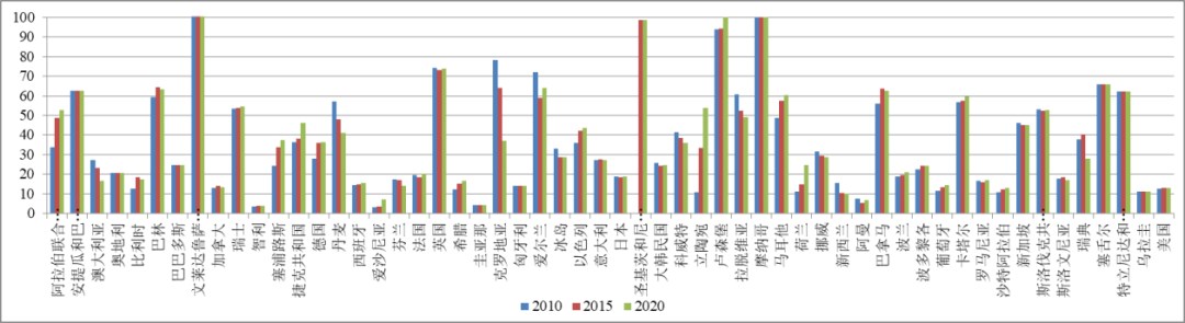 圖8 2010、2015和2020年高收入國(guó)家生活占抽取淡水資源百分比(%)