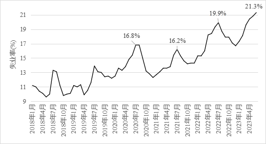 (二)增加社會發(fā)展不穩(wěn)定因素。長期以來,高失業(yè)率是社會不穩(wěn)定風險來源之一,青年人是沖動犯罪的主體,失業(yè)易導致其缺乏收入來源,面臨個人經(jīng)濟危機,甚至會誘發(fā)焦慮、抑郁等嚴重的心理問題,從而引發(fā)高犯罪率,對社會安定造成威脅。2004年韓國青年失業(yè)率惡化,致使超10%的20歲以上青年成為信用不良者,暴增79%,自殺率也快速攀升至九十年代的2倍,同時有研究表明非洲青年失業(yè)與地區(qū)社會動蕩甚至戰(zhàn)爭有關(guān)。此外,作為社會中最有活力的人群,其產(chǎn)生的焦慮、失望和迷茫情緒經(jīng)媒體傳播后,會影響整個社會對經(jīng)濟發(fā)展前景的信心。