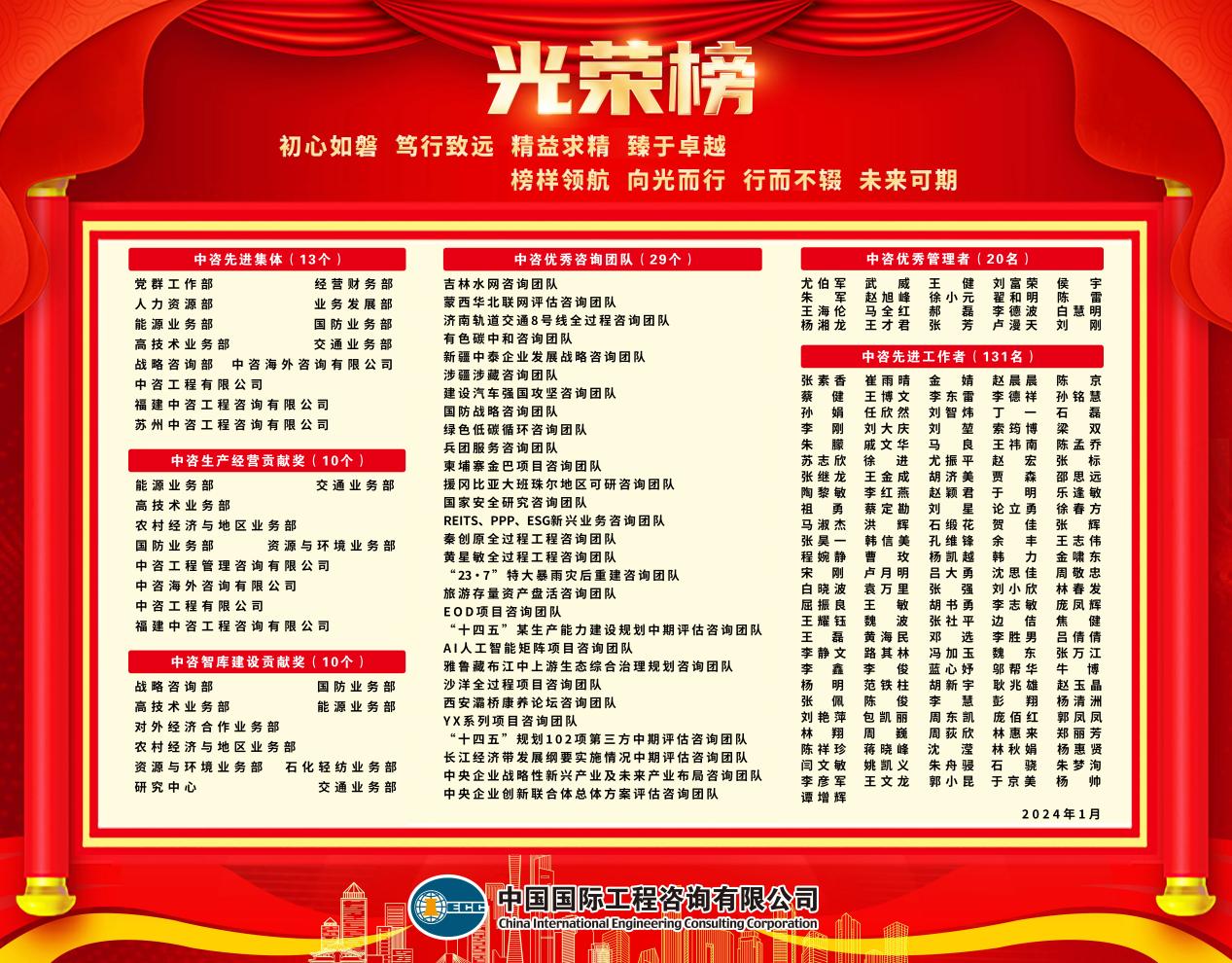 闊步新征程,昂首向未來。1月30日,中咨公司召開2024年度工作會(huì)議。會(huì)議的主要任務(wù)是,以習(xí)近平新時(shí)代中國特色社會(huì)主義思想為指導(dǎo),全面貫徹黨的二十大、二十屆二中全會(huì)精神和二十屆中央紀(jì)委三次全會(huì)精神,落實(shí)中央經(jīng)濟(jì)工作會(huì)議部署和中央企業(yè)負(fù)責(zé)人會(huì)議要求,全面總結(jié)公司2023年工作,聚焦新時(shí)代新征程面臨的新形勢(shì)新任務(wù),謀劃下一階段落實(shí)好“五五戰(zhàn)略”的具體路徑,部署2024年重點(diǎn)任務(wù),推動(dòng)公司高質(zhì)量發(fā)展再創(chuàng)新局面。 公司黨委書記、董事長、總經(jīng)理茍護(hù)生作《扎實(shí)推動(dòng)“五五戰(zhàn)略”落地生根 奮力開創(chuàng)公司高質(zhì)量發(fā)展新局面》主題報(bào)告。黨委委員、總會(huì)計(jì)師王麗靜主持會(huì)議。黨委委員、中咨戰(zhàn)略研究院執(zhí)行院長竇皓宣讀《公司黨委關(guān)于表彰2023年度先進(jìn)集體和先進(jìn)個(gè)人的決定》。黨委委員、副總經(jīng)理潘小海傳達(dá)中央經(jīng)濟(jì)工作會(huì)議、中央企業(yè)負(fù)責(zé)人會(huì)議、全國發(fā)展和改革工作會(huì)議精神。黨委委員、副總經(jīng)理沈浩傳達(dá)國務(wù)院國資委黨風(fēng)廉政建設(shè)和反腐敗工作會(huì)議精神。國家審計(jì)署企業(yè)審計(jì)八局有關(guān)同志以及公司外部董事楊愛民、余德輝出席會(huì)議。會(huì)議期間還表彰了2023年度先進(jìn)集體和個(gè)人以及簽訂2024年度經(jīng)營考核責(zé)任書。 會(huì)議指出,2023年,公司深入開展習(xí)近平新時(shí)代中國特色社會(huì)主義思想主題教育,堅(jiān)定不移落實(shí)“五五戰(zhàn)略”,加快建設(shè)國家高端智庫和世界一流咨詢機(jī)構(gòu),在服務(wù)中央科學(xué)決策和國家重大戰(zhàn)略方面做出突出貢獻(xiàn),核心功能和核心競爭力更加凸顯,圓滿完成國資委各項(xiàng)考核指標(biāo)。公司咨詢服務(wù)工作得到委托方高度認(rèn)可,收到中央部委、地方政府、大型企事業(yè)單位等各方感謝信240封,100多名個(gè)人和團(tuán)隊(duì)受到表揚(yáng)。公司榮獲菲迪克“卓越工程項(xiàng)目獎(jiǎng)”“優(yōu)秀工程項(xiàng)目獎(jiǎng)”各1項(xiàng)、魯班獎(jiǎng)4項(xiàng)、國家優(yōu)質(zhì)工程獎(jiǎng)9項(xiàng),獲得“2023年度誠信經(jīng)營守信踐諾標(biāo)桿企業(yè)”榮譽(yù)稱號(hào)。 會(huì)議從九個(gè)方面系統(tǒng)回顧過去一年的主要業(yè)績。智庫建設(shè)勇攀高峰,上報(bào)決策咨詢成果數(shù)量、質(zhì)量雙雙再創(chuàng)歷史新高;服務(wù)國家戰(zhàn)略做出新貢獻(xiàn),在服務(wù)國家重大戰(zhàn)略規(guī)劃評(píng)估、國家重大工程建設(shè)、高水平支撐現(xiàn)代化產(chǎn)業(yè)體系建設(shè)和科技自立自強(qiáng)、踐行綠色發(fā)展理念、助力“一帶一路”行穩(wěn)致遠(yuǎn)、保障國防軍工建設(shè)、服務(wù)國資央企高質(zhì)量發(fā)展等方面展現(xiàn)擔(dān)當(dāng)作為;生產(chǎn)經(jīng)營逆勢(shì)上揚(yáng),“一利”穩(wěn)定增長,“五率”持續(xù)優(yōu)化;業(yè)務(wù)結(jié)構(gòu)持續(xù)優(yōu)化,新興業(yè)務(wù)穩(wěn)步增長,總部部門與所屬企業(yè)協(xié)同效應(yīng)更加突出,“6+1”全過程咨詢產(chǎn)業(yè)鏈條進(jìn)一步完善;深化改革實(shí)現(xiàn)新突破,形成新時(shí)期推動(dòng)公司高質(zhì)量發(fā)展的“五五戰(zhàn)略”,新一輪改革深化提升行動(dòng)高質(zhì)量起步,董事會(huì)運(yùn)行更加規(guī)范、作用更加突出;建設(shè)世界一流咨詢機(jī)構(gòu)邁出堅(jiān)實(shí)步伐,在對(duì)標(biāo)世界一流價(jià)值創(chuàng)造、豐富資質(zhì)體系、品牌引領(lǐng)、區(qū)域化布局、數(shù)字化運(yùn)營、標(biāo)準(zhǔn)化建設(shè)、財(cái)務(wù)信息化、干部選任、專家隊(duì)伍建設(shè)、智庫成果發(fā)布等方面取得新成效;風(fēng)險(xiǎn)內(nèi)控工作持續(xù)加強(qiáng),推進(jìn)審計(jì)全覆蓋,健全合規(guī)管理體系,安全生產(chǎn)形勢(shì)總體穩(wěn)定;黨的建設(shè)開創(chuàng)新局面,在主題教育中一體推進(jìn)理論學(xué)習(xí)、調(diào)查研究、推動(dòng)發(fā)展、檢視整改,宣傳思想、工會(huì)、統(tǒng)戰(zhàn)、團(tuán)青等各項(xiàng)工作邁上新臺(tái)階;全面從嚴(yán)治黨縱深推進(jìn),突出政治監(jiān)督,做實(shí)日常監(jiān)督,加強(qiáng)作風(fēng)建設(shè),開展紀(jì)檢干部隊(duì)伍教育整頓和巡查式、回訪式、機(jī)動(dòng)式巡視,黨風(fēng)廉政建設(shè)和反腐敗工作走深走實(shí)。公司各項(xiàng)工作全面推進(jìn),呈現(xiàn)穩(wěn)中求進(jìn)、進(jìn)中向好的發(fā)展態(tài)勢(shì)。 茍護(hù)生表示,在經(jīng)濟(jì)下行壓力大、改革發(fā)展任務(wù)重、矛盾風(fēng)險(xiǎn)挑戰(zhàn)多的背景下,公司取得發(fā)展成績殊為不易,根本在于以習(xí)近平同志為核心的黨中央堅(jiān)強(qiáng)領(lǐng)導(dǎo),是國務(wù)院的信任和各部委大力支持、國資委直接指導(dǎo)的結(jié)果,是全體干部職工團(tuán)結(jié)拼搏的結(jié)果。新的一年要延續(xù)良好勢(shì)頭,就要深入研判當(dāng)前形勢(shì),科學(xué)謀劃下步工作。總體而言,機