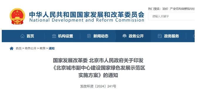 近日,經(jīng)國務(wù)院同意,國家發(fā)展改革委、北京市人民政府聯(lián)合印發(fā)《北京城市副中心建設(shè)國家綠色發(fā)展示范區(qū)實(shí)施方案》(發(fā)改環(huán)資〔2024〕241號(hào),以下簡(jiǎn)稱《實(shí)施方案》),明確了北京城市副中心綠色高質(zhì)量發(fā)展、打造人與自然和諧共生樣板的工作路徑,為北京城市副中心有序承接中心城區(qū)非首都功能疏解、推進(jìn)首都城市功能重組和布局優(yōu)化,建設(shè)和諧、宜居、美麗的綠色發(fā)展高地繪制了總體藍(lán)圖,對(duì)于推動(dòng)北京“新兩翼”建設(shè)取得更大突破,促進(jìn)京津冀協(xié)同發(fā)展具有重要而深遠(yuǎn)的意義。