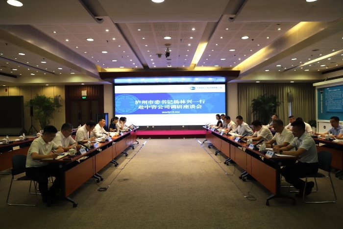 瀘州市市委常委、常務副市長王斌達,中咨公司黨委委員、副總經(jīng)理潘小海參加座談。瀘州市市委秘書長張司倫、中咨公司首席咨詢師郭建斌以及雙方有關部門負責同志共同與會。
