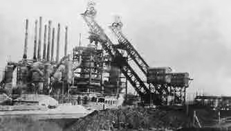 1916年,日本政府批準(zhǔn)建立鞍山制鐵所。1917年4月3日舉行“地鎮(zhèn)祭”,動(dòng)工修建高爐。1918年5月15日,“鞍山制鐵所”正式成立。1919年3月,煉焦廠開(kāi)始生產(chǎn)焦炭,4月29日,1號(hào)高爐點(diǎn)火,鞍山制鐵所正式投產(chǎn)。