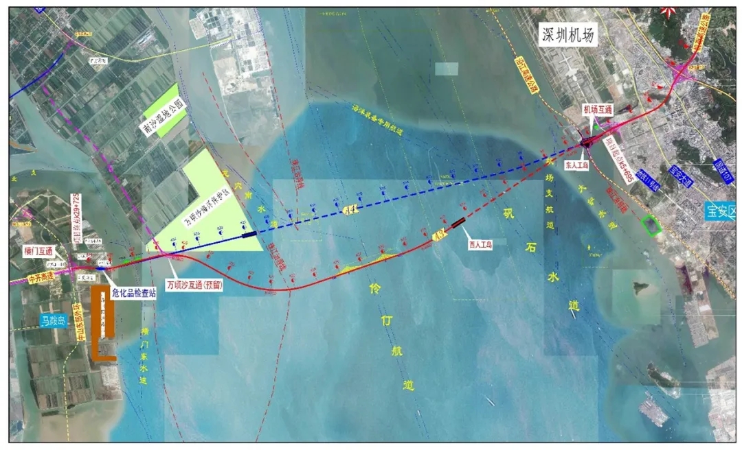 2015年8月,交通運(yùn)輸部出具《關(guān)于深圳至中山跨江通道項(xiàng)目航道條件與通航安全影響評(píng)價(jià)的審核意見(jiàn)》(交水函〔2015〕590號(hào)),明確各航道通航凈空和相關(guān)技術(shù)要求。