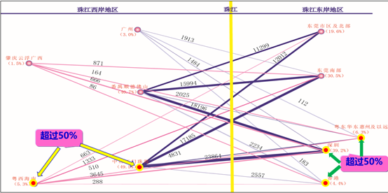 珠江口東西兩岸跨江出行方向分布圖