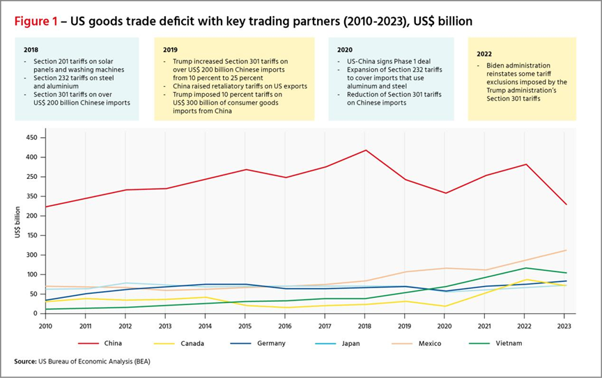 在評估美國貿(mào)易和經(jīng)濟政策制定方式的急劇轉(zhuǎn)變時,有幾點值得注意,這種轉(zhuǎn)變始于特朗普時期,并在拜登時期基本延續(xù)。這些包括