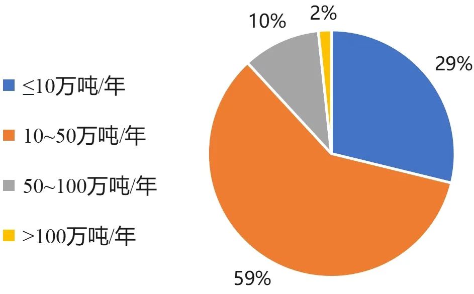 圖6 不同規(guī)模綠氨項目數(shù)量占比(截至2023年底建成、在建及規(guī)劃項目)