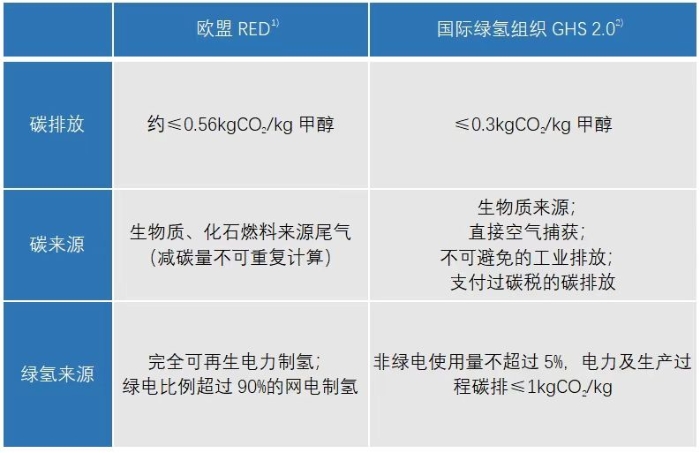 表1 國際綠色甲醇相關(guān)標(biāo)準(zhǔn)規(guī)定