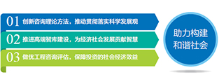 ?   在國家全面建設小康社會的進程中積極貢獻我們的力量,在國家經濟社會發(fā)展戰(zhàn)略的制定和實施中不斷奉獻我們的智慧,在國家投資決策上努力提供科學的依據,以凝聚思想、優(yōu)質高效的咨詢成果助力社會民生事業(yè),用心做好服務,爭做工程咨詢行業(yè)的優(yōu)秀企業(yè)公民。 ?